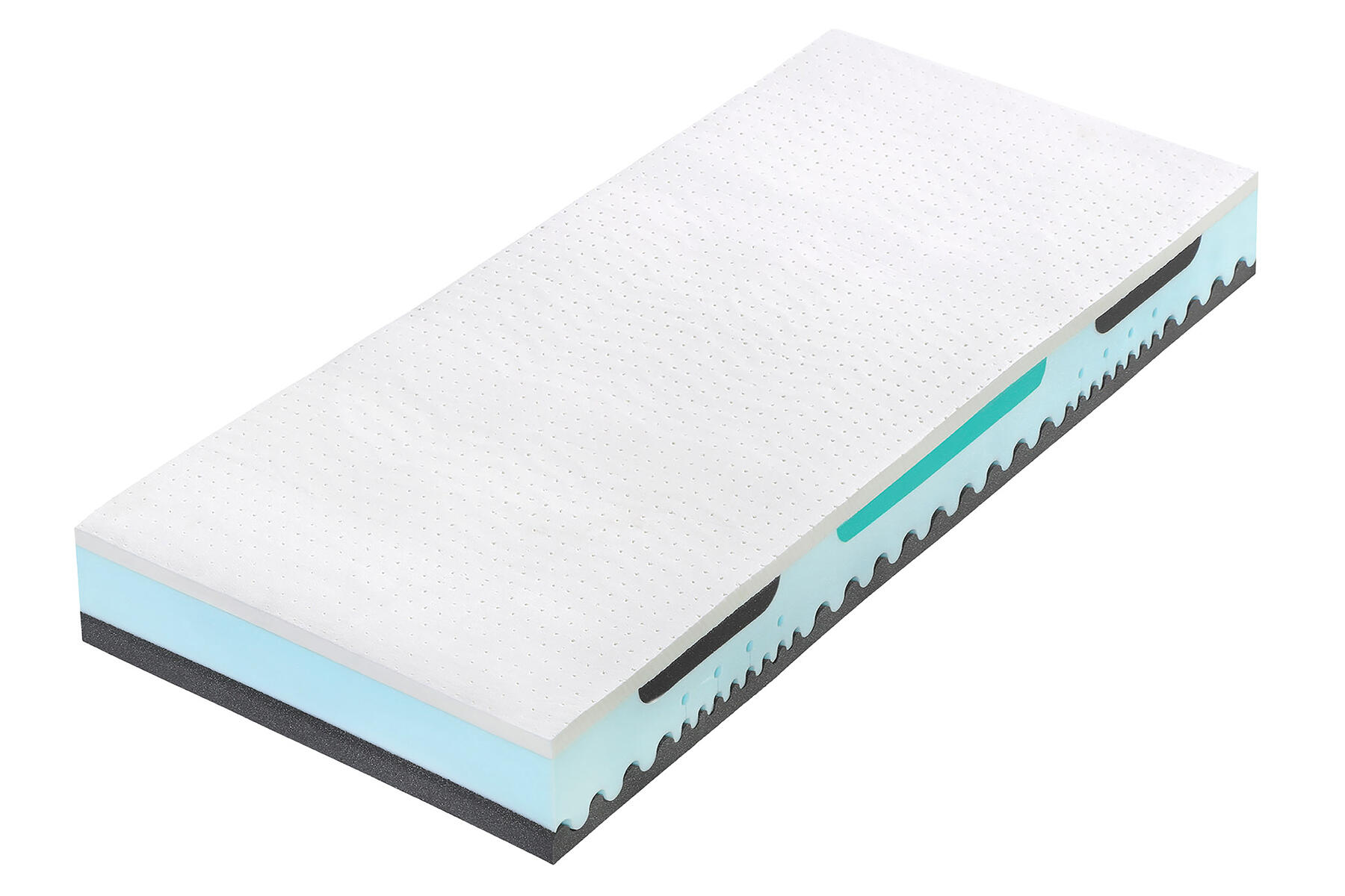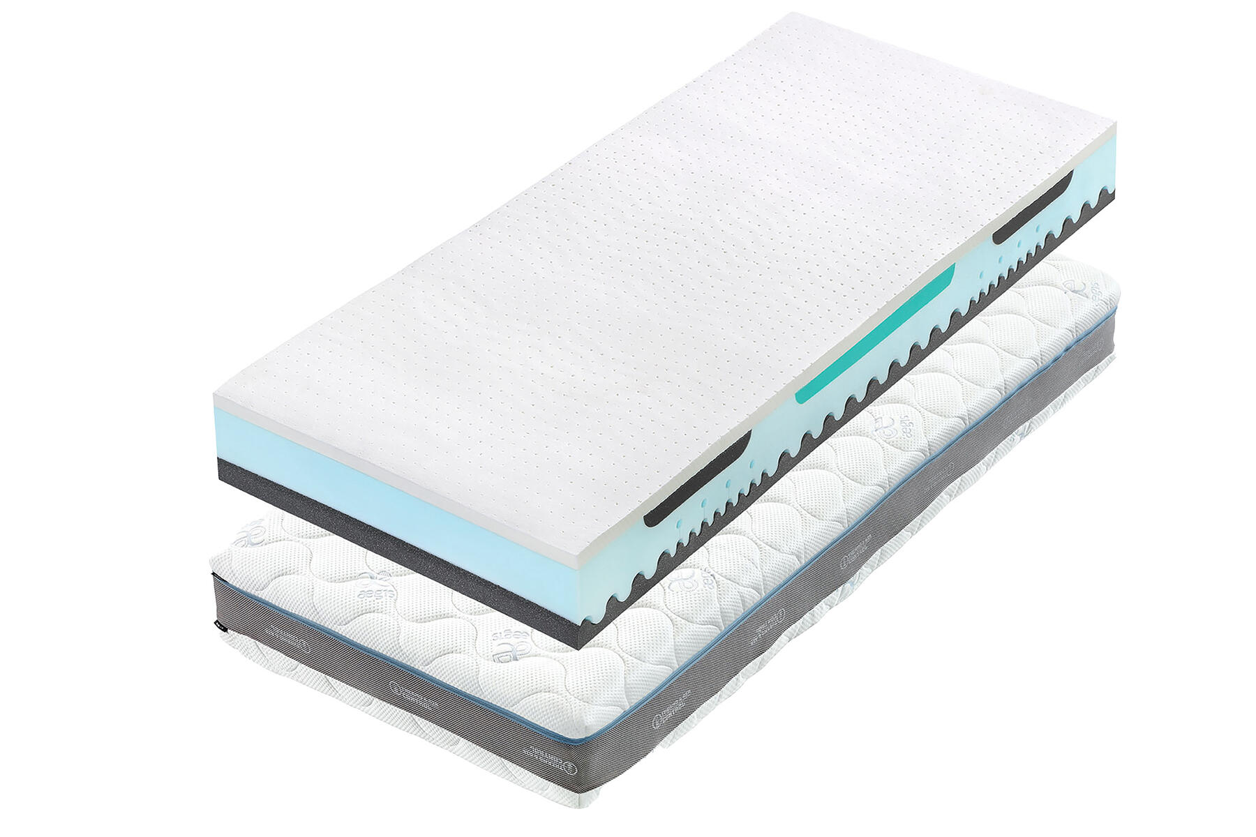 DOKONALO POHODLNÉ A VZDUŠNÉ JADRO: Ortopedická 7- zónová konštrukcia s pamäťovou penou bez lepenia a s priedušným, pohodlným latexom. Objemové hmotnosti vrstiev 35 - 65 kg/m3 s najdlhšou možnou mechanickou i hygienickou životnosťou.