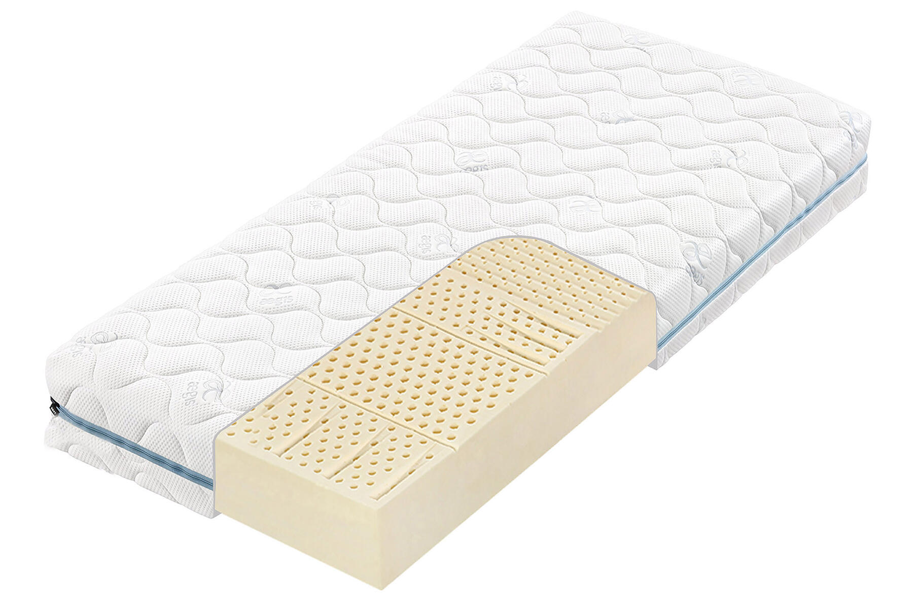 - Latex - takmer nezničiteľné, tvarovo stále ortopedické jadro z jedného kusa latexu s objemovou hmotnosťou 60 kg/m3. Vďaka perforáciám má 7 anatomických zón a je priedušné.
