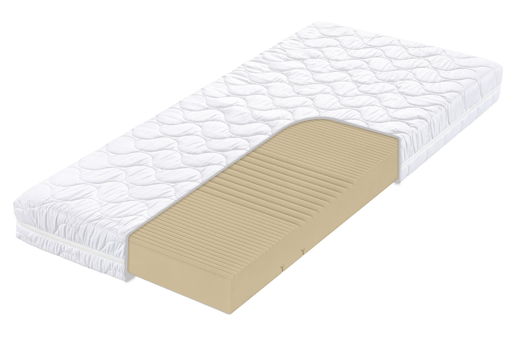 Ortopedické 5- zónové jadro s odolnou cca 30 kg/m3 za studena tvarovanou penou Flexifoam® XF skvelo dýcha a je odolné (aj detskému hopsaniu). Jemne profilovaná poddajnejšia strana a pevnejšia strana (celkom rovná).