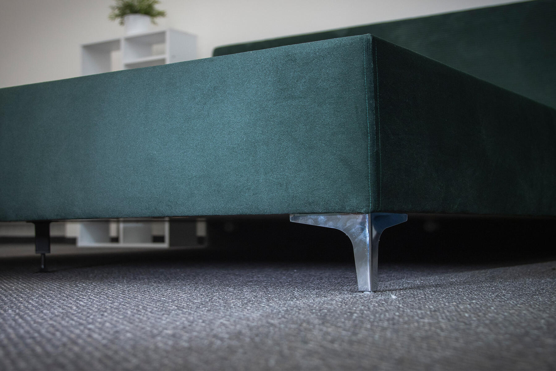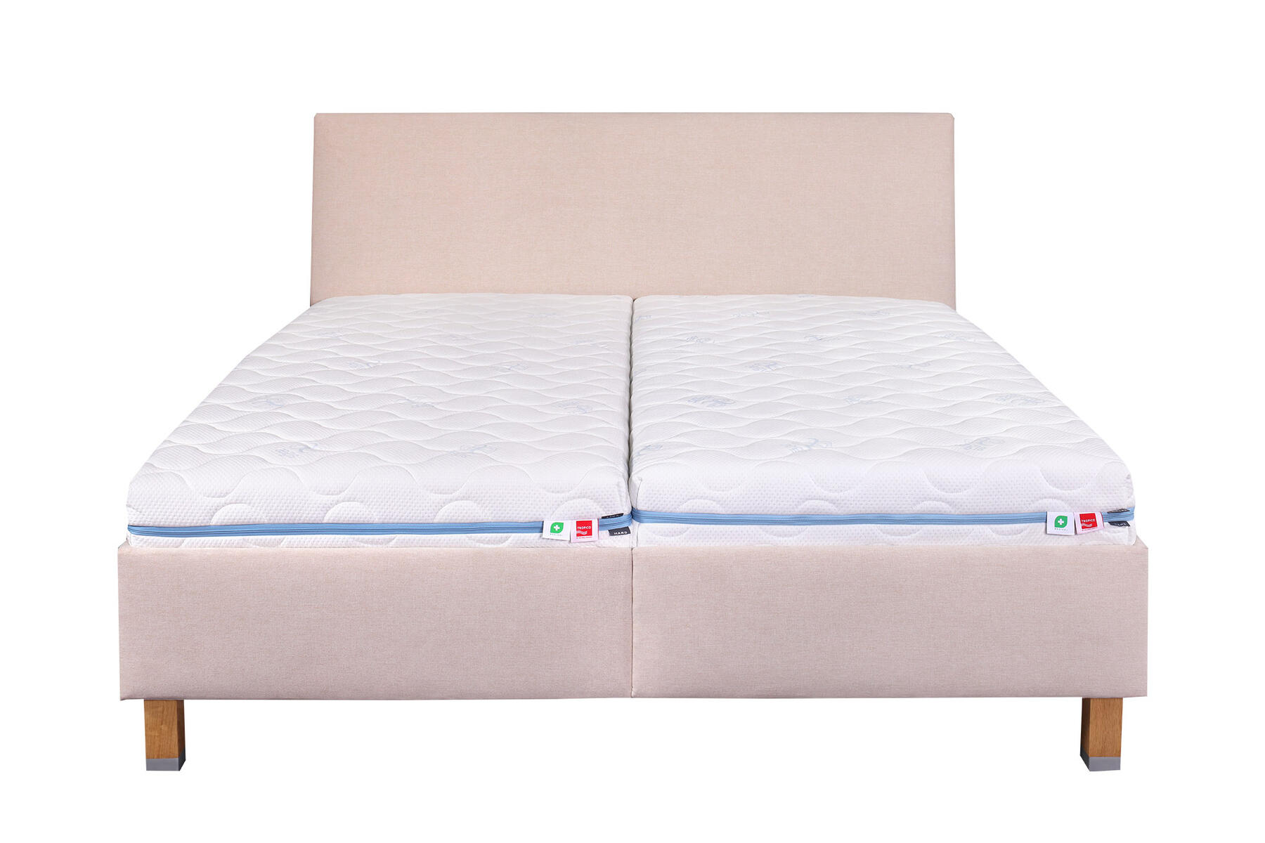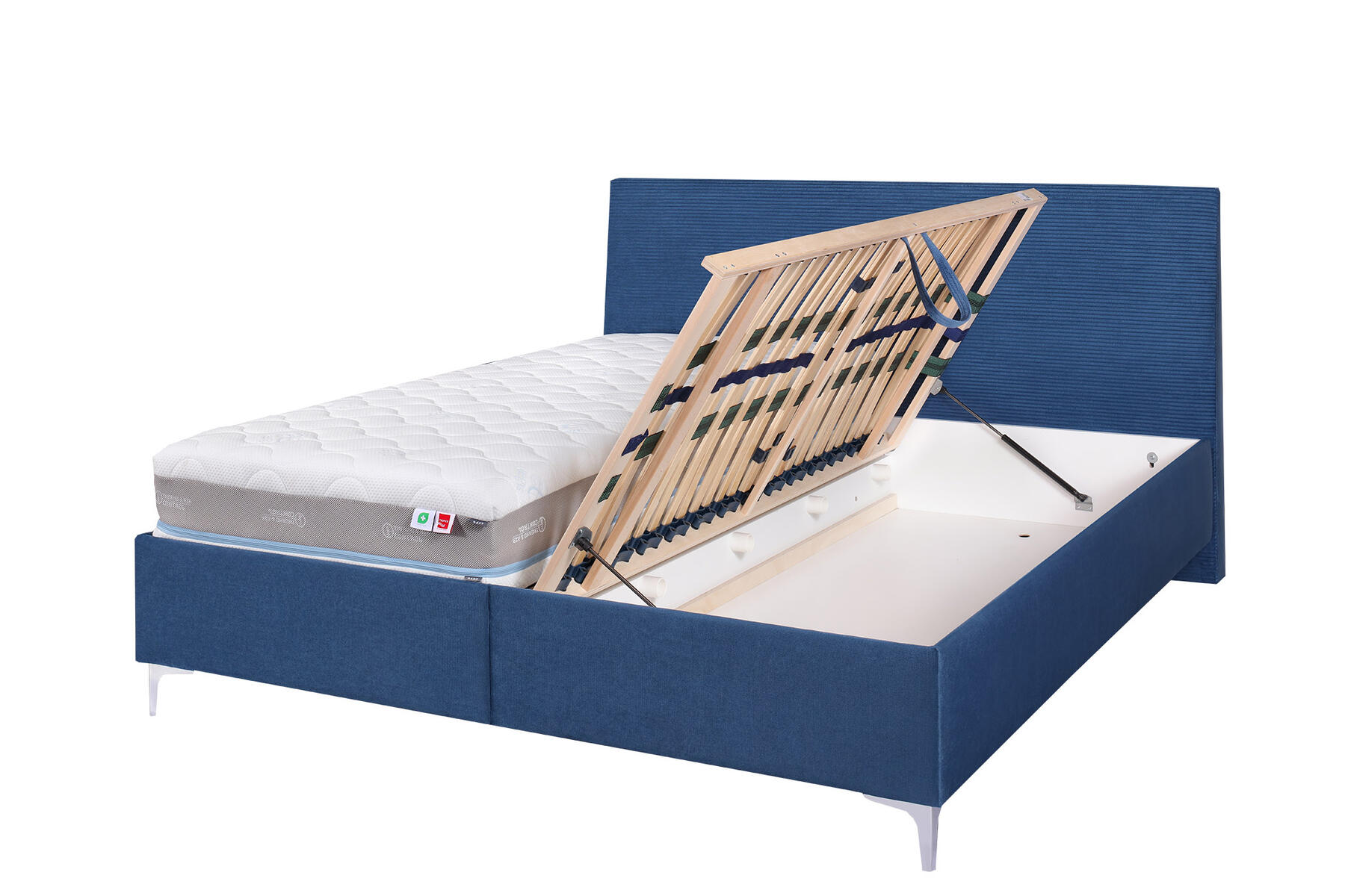 Posteľ je vhodná na použitie s ľubovoľnými matracmi. Výška matraca potom určí konečnú výšku ložnej plochy. Úložné priestory sú ľahko dostupné vďaka vyklápacím mechanizmom s plynovými vzperami. Na prístup do úložných priestorov sa používajú rošty s bočným výklopom. Vysoké nožičky, zaisťujú, že posteľ nie je priamo na zemi a tým poskytujú správne prúdenie vzduchu pod posteľou, takže nebudete vystavení prievanu. Voliteľné čelo a poťahovú látku si vyberiete podľa svojho vkusu či dizajnu vašej spálne. Posteľ ponúka vybavenie dvoch dizajnových nožičiek a dvoch kovových nožičiek, ktoré slúžia ako spojnica boxov na vnútornej strane (z vonkajšieho pohľadu nie sú viditeľné). Boxy sú pevne priskrutkované a nedovolia akýkoľvek posun. Posteľ s čalúnenou základňou v tvare boxu je pevná a má odvetrávané úložné priestory. Je vhodná na použitie s akýmikoľvek matracmi, pričom výška matraca určuje konečnú výšku ložnej plochy. Úložné priestory sú ľahko prístupné vďaka vyklápacím mechanizmom s plynovými vzperami a bočnému výklopu roštov. Vysoké nožičky zaisťujú, že posteľ nie je priamo na zemi, čo umožňuje správne prúdenie vzduchu pod posteľou a chráni vás pred prievanom. Čelo postele a poťahovú látku si môžete vybrať podľa svojho vkusu alebo dizajnu vašej spálne. Posteľ je vybavená dvoma dizajnovými nožičkami a dvoma kovovými nožičkami, ktoré slúžia ako spojnica boxov na vnútornej strane a nie sú viditeľné z vonkajšieho pohľadu. Boxy sú pevne priskrutkované, čo zabraňuje akémukoľvek posunu.
