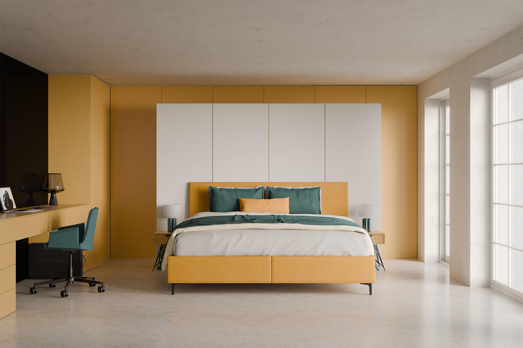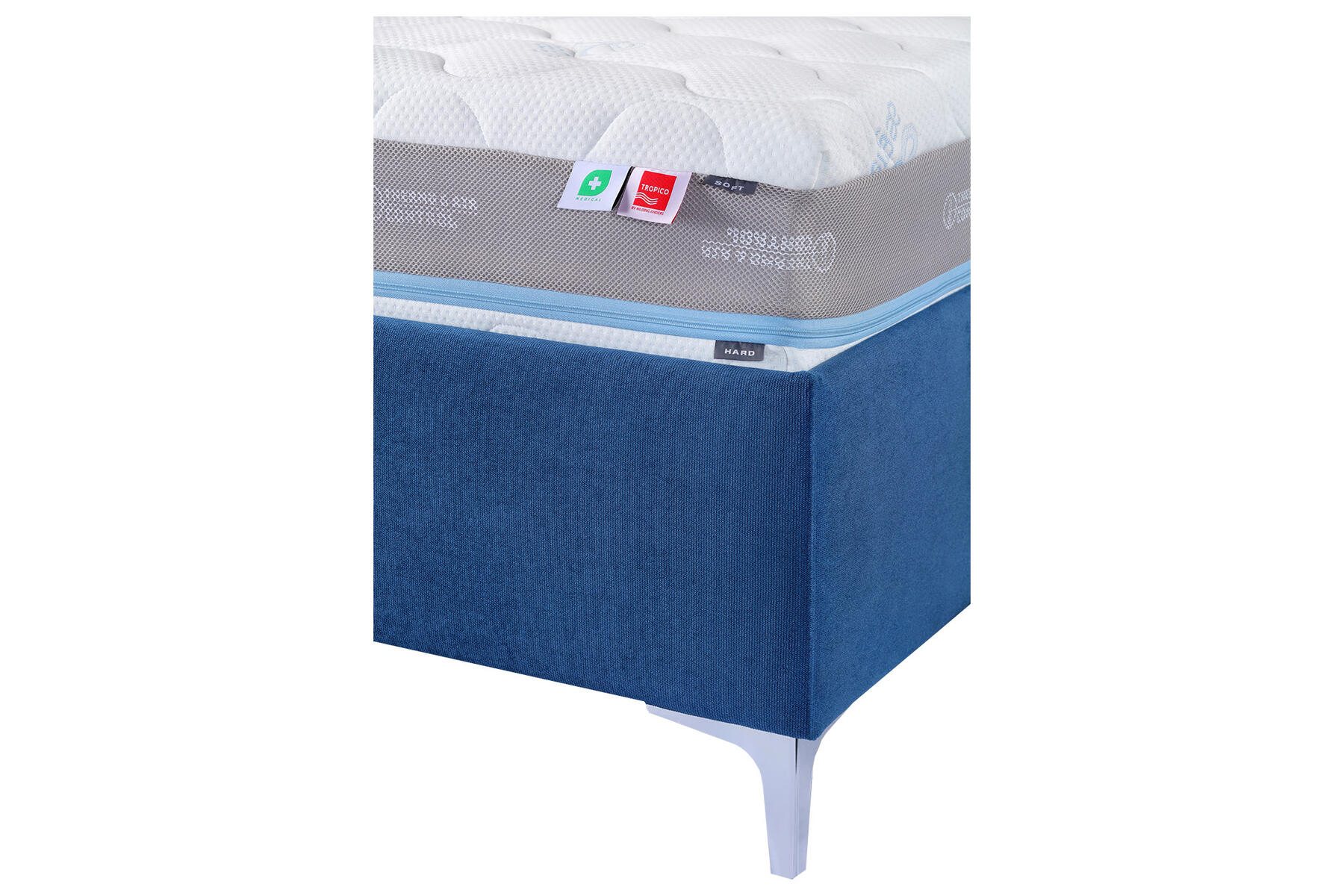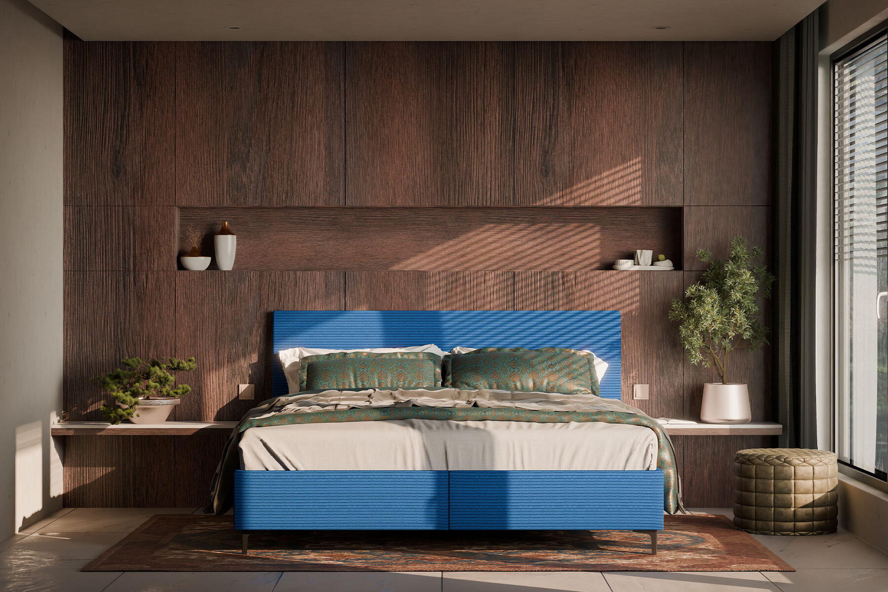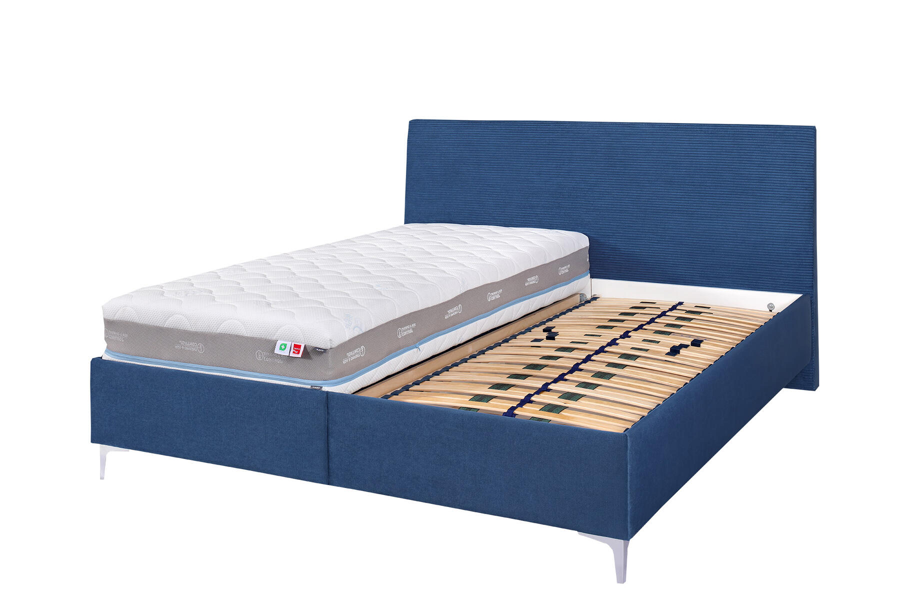 Posteľ je vhodná na použitie s ľubovoľnými matracmi. Výška matraca potom určí konečnú výšku ložnej plochy. Úložné priestory sú ľahko dostupné vďaka vyklápacím mechanizmom s plynovými vzperami. Na prístup do úložných priestorov sa používajú rošty s bočným výklopom. Vysoké nožičky, zaisťujú, že posteľ nie je priamo na zemi a tým poskytujú správne prúdenie vzduchu pod posteľou, takže nebudete vystavení prievanu. Voliteľné čelo a poťahovú látku si vyberiete podľa svojho vkusu či dizajnu vašej spálne. Posteľ ponúka vybavenie dvoch dizajnových nožičiek a dvoch kovových nožičiek, ktoré slúžia ako spojnica boxov na vnútornej strane (z vonkajšieho pohľadu nie sú viditeľné). Boxy sú pevne priskrutkované a nedovolia akýkoľvek posun. Posteľ s čalúnenou základňou v tvare boxu je pevná a má odvetrávané úložné priestory. Je vhodná na použitie s akýmikoľvek matracmi, pričom výška matraca určuje konečnú výšku ložnej plochy. Úložné priestory sú ľahko prístupné vďaka vyklápacím mechanizmom s plynovými vzperami a bočnému výklopu roštov. Vysoké nožičky zaisťujú, že posteľ nie je priamo na zemi, čo umožňuje správne prúdenie vzduchu pod posteľou a chráni vás pred prievanom. Čelo postele a poťahovú látku si môžete vybrať podľa svojho vkusu alebo dizajnu vašej spálne. Posteľ je vybavená dvoma dizajnovými nožičkami a dvoma kovovými nožičkami, ktoré slúžia ako spojnica boxov na vnútornej strane a nie sú viditeľné z vonkajšieho pohľadu. Boxy sú pevne priskrutkované, čo zabraňuje akémukoľvek posunu.