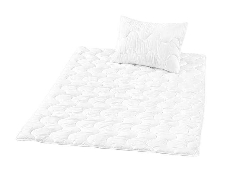 Prešívané, veľmi jemné, a napriek tomu pevné a pranie odolné mikrovlákno. Mäkučké a vzdušné prevedenie, ktoré navyše obmedzuje „kĺzanie v povlaku“. Prikrývka s klimatizačnou vrstvou dutého rúna. Vankúš, prikrývka a chránič sú prešívané - držia tvar a výplň zostáva na svojom mieste. Prešívaný Pranie na 60 ° C - záruka hygieny a pokojného spánku aj pre alergikov.