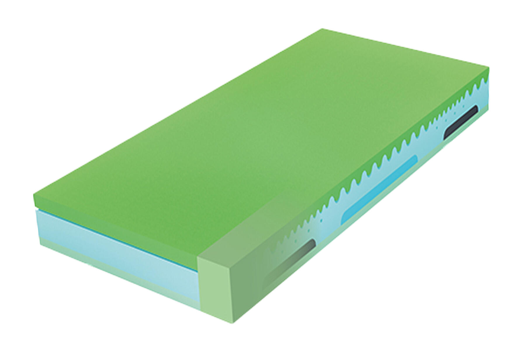 - Tuhšia strana z peny Flexifoam®. Za studena tvarovaná polyuretánová pena, vyrábaná pod kontrolovaným tlakom pre stabilnú kvalitu a výdrž. Jej prednosťou je vzdušnosť, pružnosť a ľahkosť. Má podobné vlastnosti, ako studená pena.