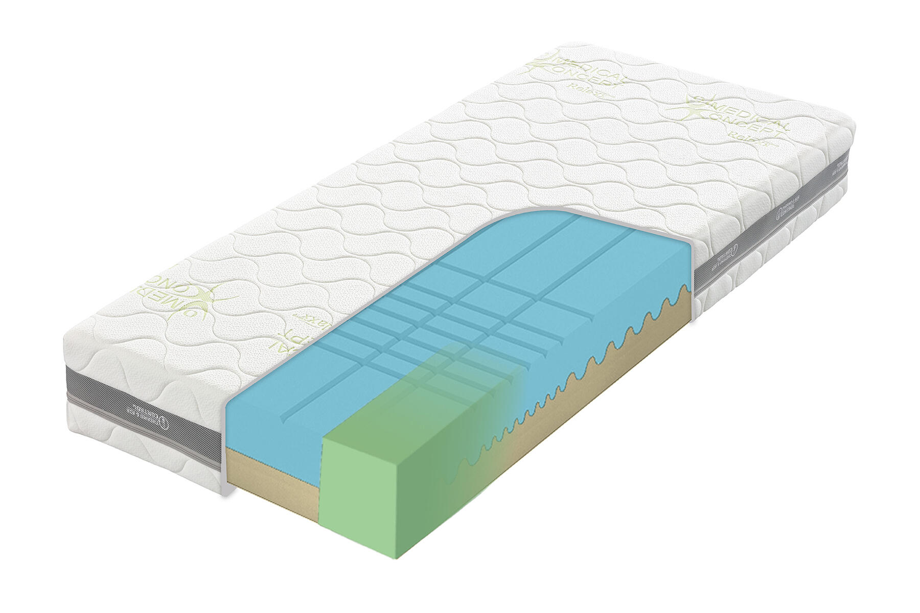 - Nelepené jadro na maximálnu hygienu a obmedzenie potenia. Uľahčenie údržby roztvorením a prevetraním. Vďaka profilácii styčných plôch je matrac dokonalo pevný.