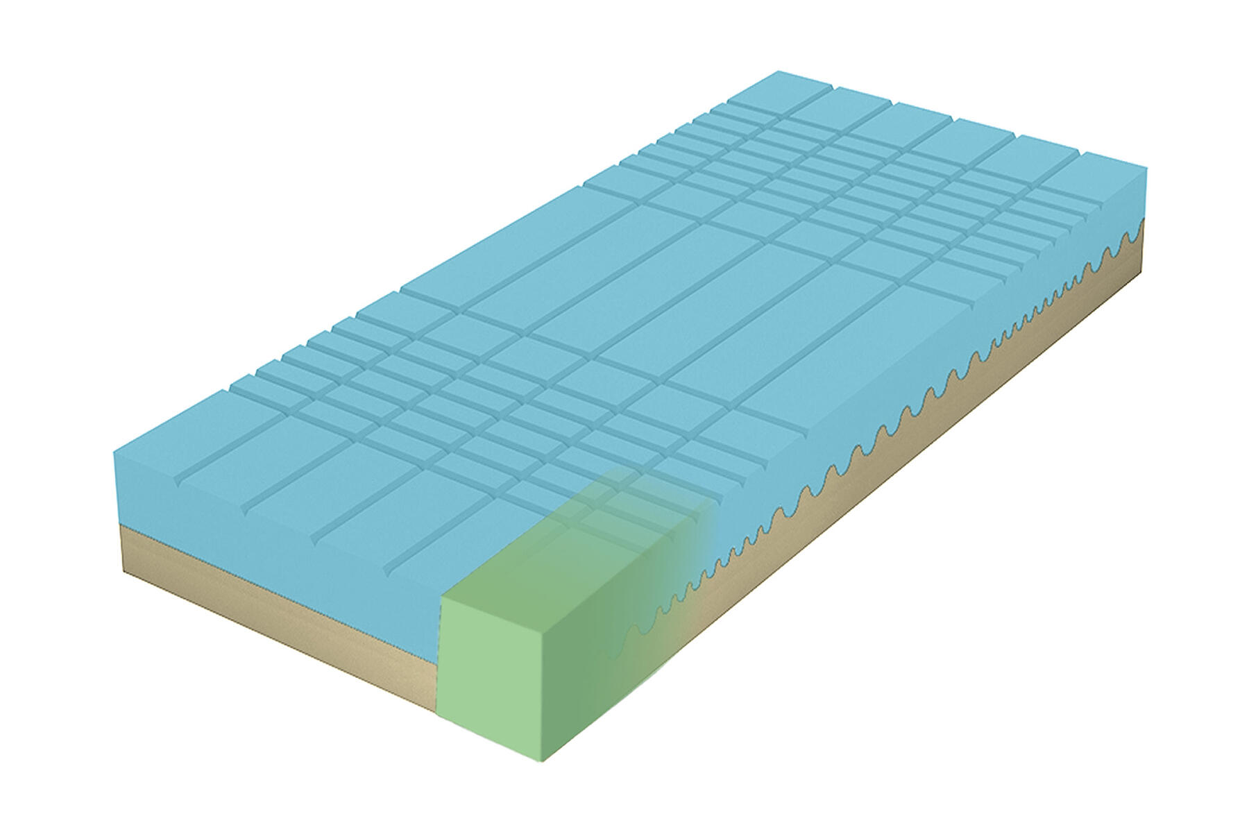 - CubeCare komfortná profilácia. Hybridná strana matraca je vybavená profiláciou CubeCare v tvare výkyvných 3D kociek. Vyvinutá pre zdravotné matrace. Distribuuje tlak tela rovnomerne do jadra matraca so zreteľom na úpravu protitlaku v jednotlivých zónach. Vo výsledku tak napomáha obmedziť protitlak na telo a zabrániť preležaniu. A to i na matracoch tuhšej konštrukcie.